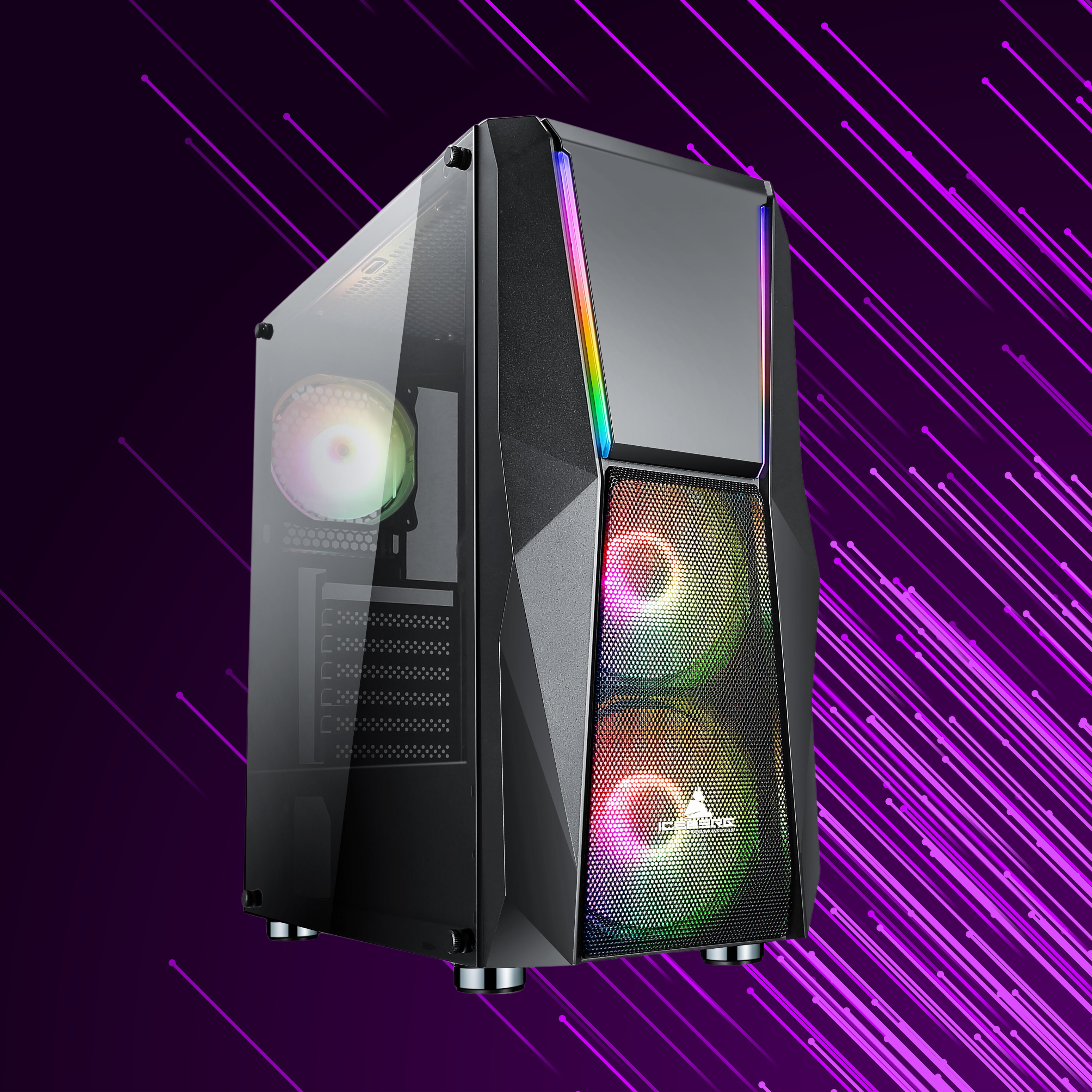 ¡Combina Refrigeración extrema con una iluminación RGB deslumbrante gracias a sus 3 ventiladores incluidos. Experimenta la potencia y el estilo en tu PC con una estética llamativa y muy visual gracias a su panel lateral de vidrio templado.