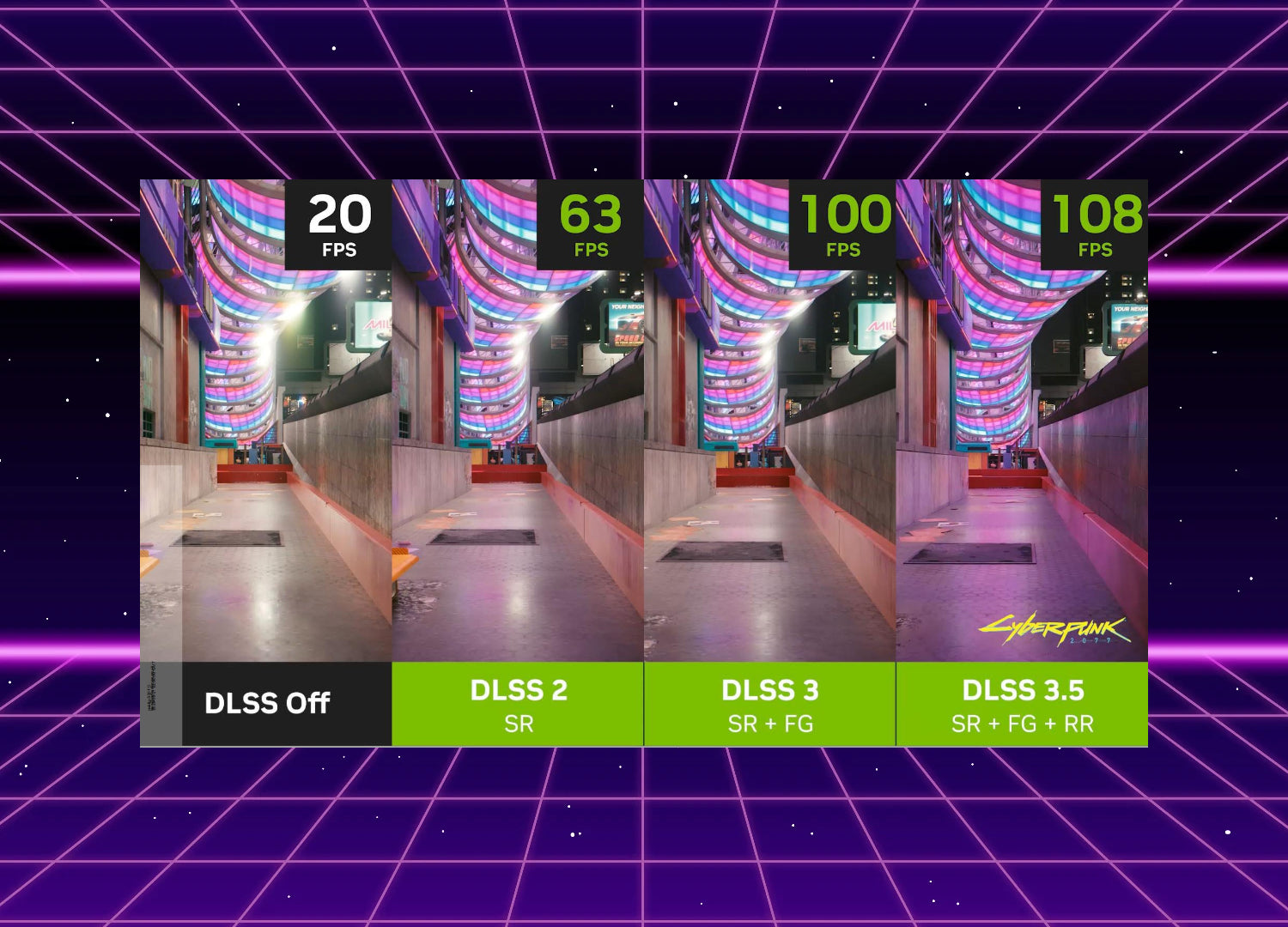 Nvidia trabaja muy de la mano con la IA para entregar una experiencia de juego más completa y de calidad sin recurrir a un gasto mucho mayor en hardware, es así como nace la tecnología DLSS, actualmente en la versión 3.5, el cual implementa un sistema de escalado y generación de fotogramas sin precedentes.